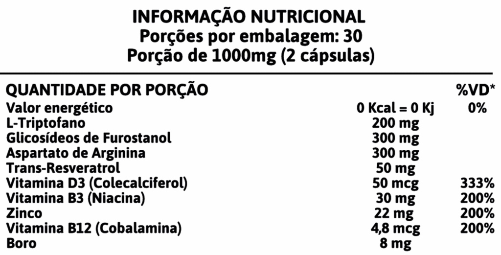 Porção por dose: 2 cápsulas – Total de 1000 mg.